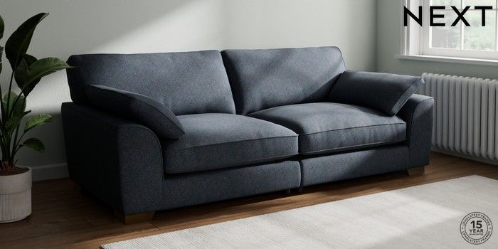7.3.1 Buy Stamford Grand Relaxed Sit 4 Seater Sofa Tweedy Chenille Navy Blue Large Square Angle - Brushed Brass from the Next UK online shop Click here to use our accessible website