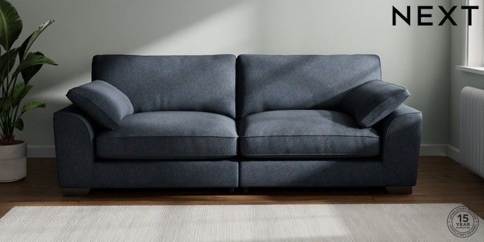 7.3.1 Buy Stamford Grand Relaxed Sit 4 Seater Sofa Tweedy Chenille Navy Blue Large Square Angle - Gunmetal from the Next UK online shop Click here to use our accessible website