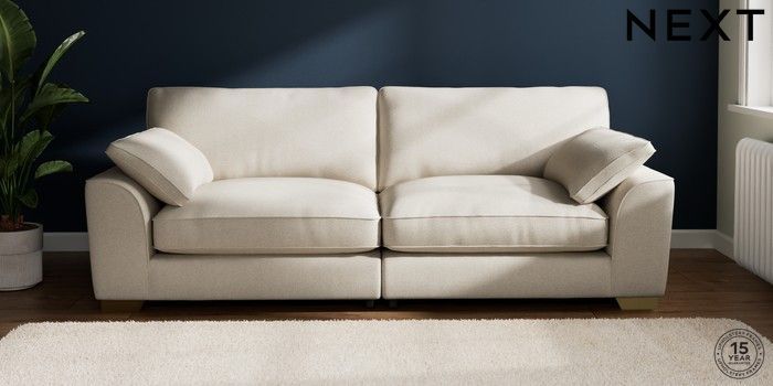 7.3.1 Buy Stamford Grand Relaxed Sit 4 Seater Sofa Tweedy Chenille Oyster Large Square Angle - Brushed Brass from the Next UK online shop Click here to use our accessible website