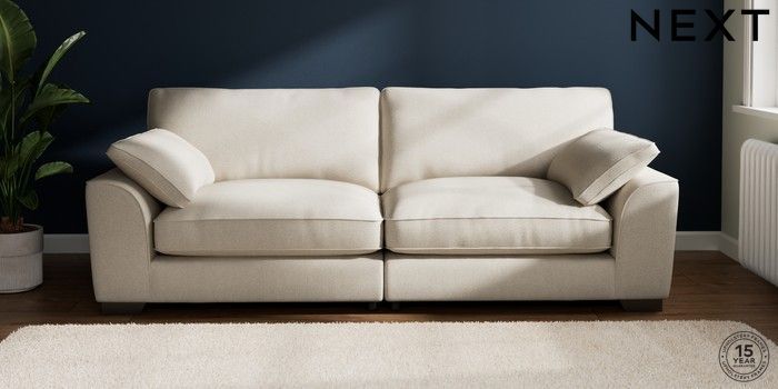 7.3.1 Buy Stamford Grand Relaxed Sit 4 Seater Sofa Tweedy Chenille Oyster Large Square Angle - Gunmetal from the Next UK online shop Click here to use our accessible website