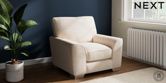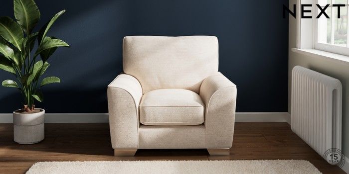 7.3.1 Buy Stamford Grand Relaxed Sit Armchair Boucle Chenille Oyster Square Angle - Chrome Metal from the Next UK online shop Click here to use our accessible website