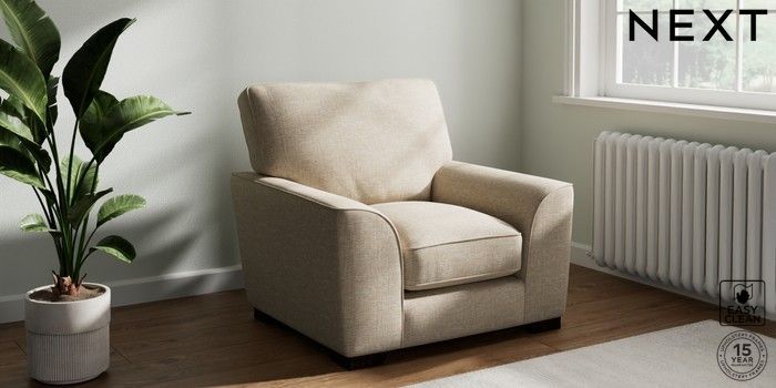 7.3.1 Buy Stamford Grand Relaxed Sit Armchair Boucle Weave Easy Clean Dark Natural Square Angle - Dark from the Next UK online shop Click here to use our accessible website