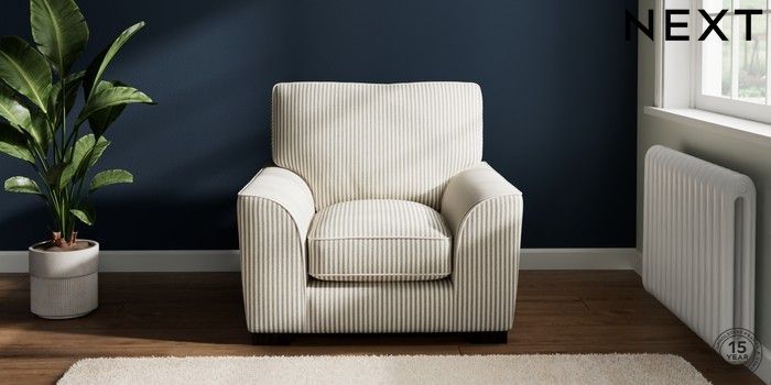 7.2.10 Buy Stamford Grand Relaxed Sit Armchair Chenille Stripe Moss Green Square Angle - Dark from the Next UK online shop Click here to use our accessible website