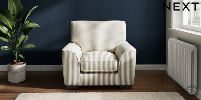 7.2.10 Buy Stamford Grand Relaxed Sit Armchair Chenille Stripe Moss Green Square Angle - Gunmetal from the Next UK online shop Click here to use our accessible website