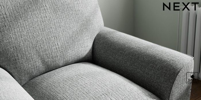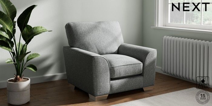 7.3.1 Buy Stamford Grand Relaxed Sit Armchair Chunky Boucle Easy Clean Mid Grey Square Angle - Chrome Metal from the Next UK online shop Click here to use our accessible website