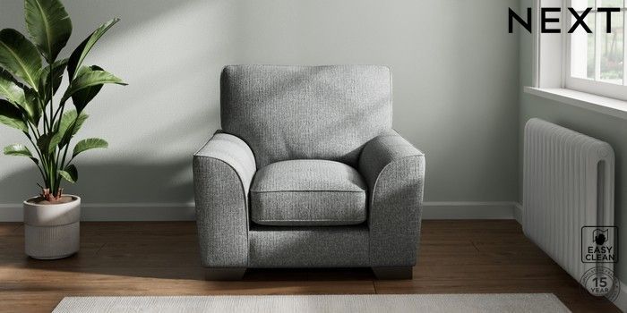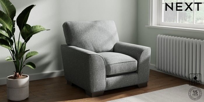 7.3.1 Buy Stamford Grand Relaxed Sit Armchair Chunky Boucle Easy Clean Mid Grey Square Angle - Gunmetal from the Next UK online shop Click here to use our accessible website