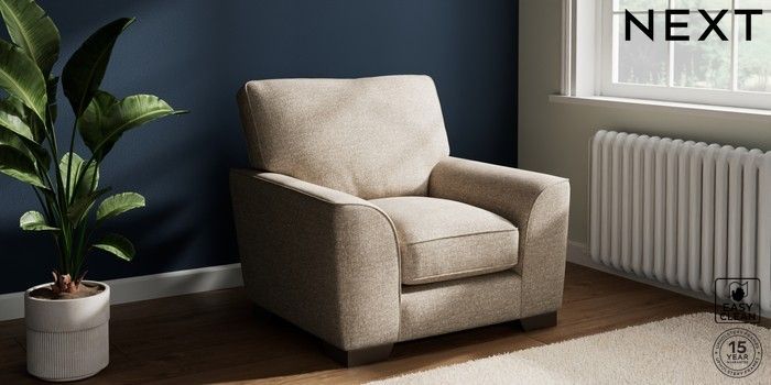 7.3.1 Buy Stamford Grand Relaxed Sit Armchair Chunky Boucle Easy Clean Mid Natural Square Angle - Gunmetal from the Next UK online shop Click here to use our accessible website