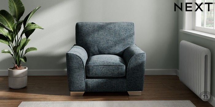 7.3.1 Buy Stamford Grand Relaxed Sit Armchair Chunky Chenille Dark Navy Blue Square Angle - Chrome Metal from the Next UK online shop Click here to use our accessible website