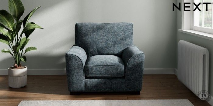 7.3.1 Buy Stamford Grand Relaxed Sit Armchair Chunky Chenille Dark Navy Blue Square Angle - Dark from the Next UK online shop Click here to use our accessible website