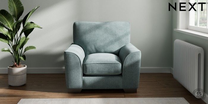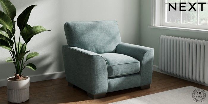 7.3.1 Buy Stamford Grand Relaxed Sit Armchair Chunky Chenille Light Teal Green Square Angle - Gunmetal from the Next UK online shop Click here to use our accessible website