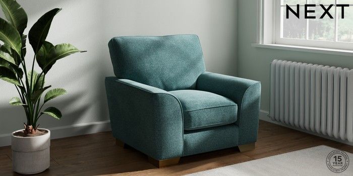 7.3.1 Buy Stamford Grand Relaxed Sit Armchair Chunky Chenille Mid Teal Green Square Angle - Brushed Brass from the Next UK online shop Click here to use our accessible website