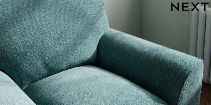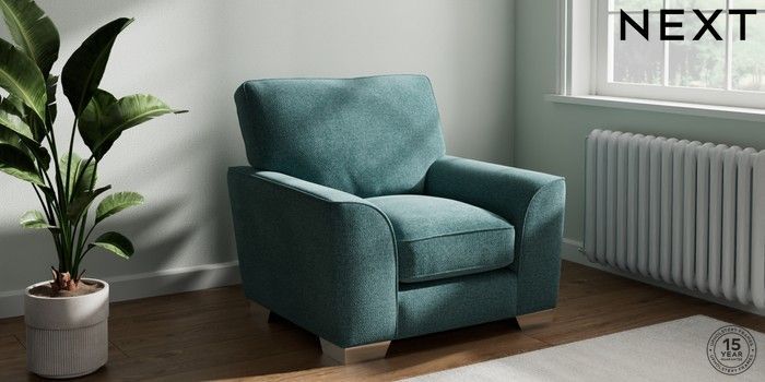 7.3.1 Buy Stamford Grand Relaxed Sit Armchair Chunky Chenille Mid Teal Green Square Angle - Chrome Metal from the Next UK online shop Click here to use our accessible website