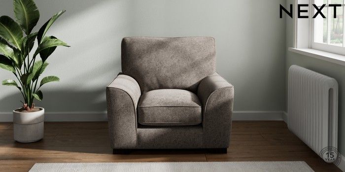 7.3.1 Buy Stamford Grand Relaxed Sit Armchair Chunky Chenille Mink Brown Square Angle - Dark from the Next UK online shop Click here to use our accessible website