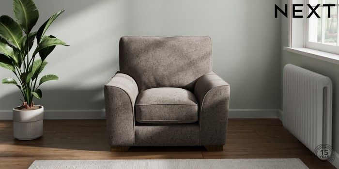 7.2.10 Buy Stamford Grand Relaxed Sit Armchair Chunky Chenille Mink Brown Square Angle - Mid from the Next UK online shop Click here to use our accessible website