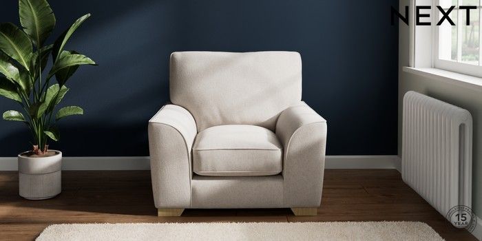 7.2.10 Buy Stamford Grand Relaxed Sit Armchair Chunky Chenille Oyster Square Angle - Light from the Next UK online shop Click here to use our accessible website