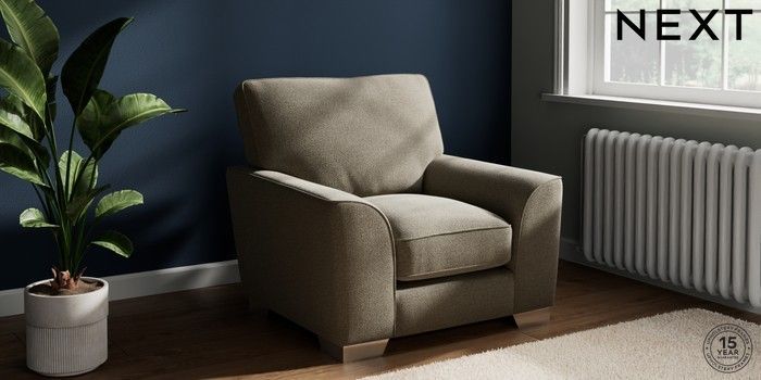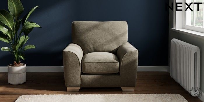 7.3.1 Buy Stamford Grand Relaxed Sit Armchair Chunky Marl Light Olive Green Square Angle - Chrome Metal from the Next UK online shop Click here to use our accessible website
