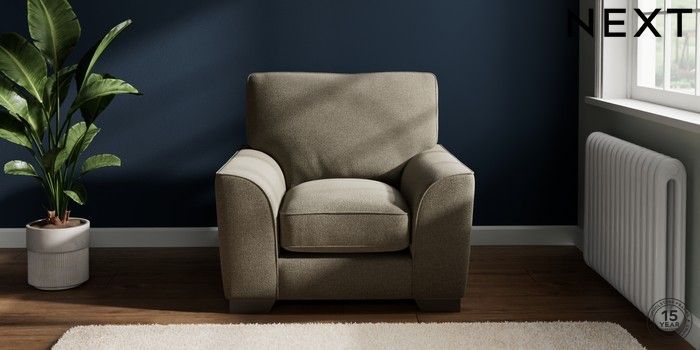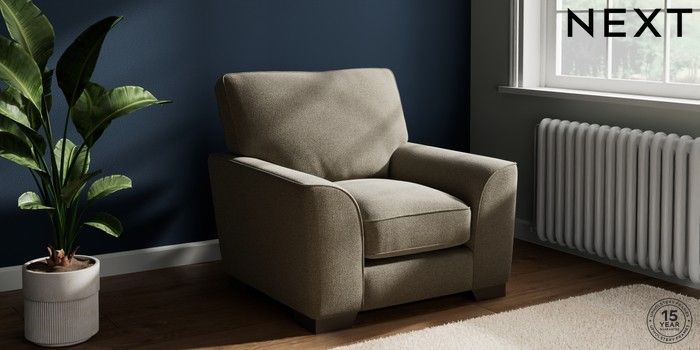 7.3.1 Buy Stamford Grand Relaxed Sit Armchair Chunky Marl Light Olive Green Square Angle - Gunmetal from the Next UK online shop Click here to use our accessible website