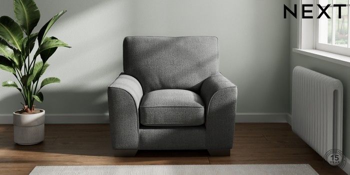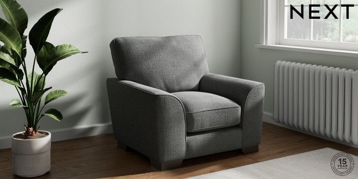 7.3.1 Buy Stamford Grand Relaxed Sit Armchair Chunky Texture Dark Grey Square Angle - Gunmetal from the Next UK online shop Click here to use our accessible website
