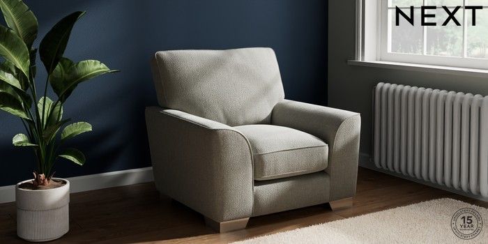 7.3.1 Buy Stamford Grand Relaxed Sit Armchair Chunky Texture Dove Square Angle - Chrome Metal from the Next UK online shop Click here to use our accessible website