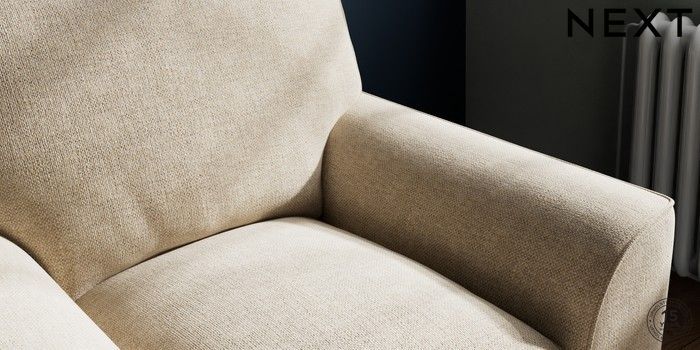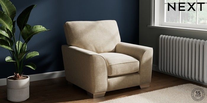 7.3.1 Buy Stamford Grand Relaxed Sit Armchair Chunky Weave Cream Square Angle - Chrome Metal from the Next UK online shop Click here to use our accessible website