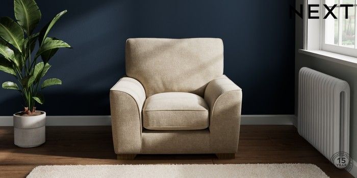 7.3.1 Buy Stamford Grand Relaxed Sit Armchair Chunky Weave Cream Square Angle - Mid from the Next UK online shop Click here to use our accessible website