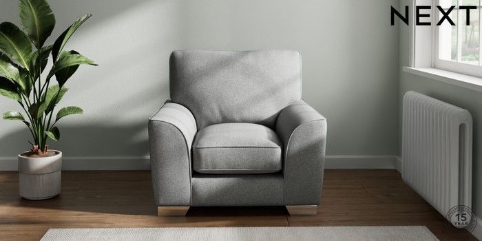 7.3.1 Buy Stamford Grand Relaxed Sit Armchair Chunky Weave Mid Grey Square Angle - Chrome Metal from the Next UK online shop Click here to use our accessible website