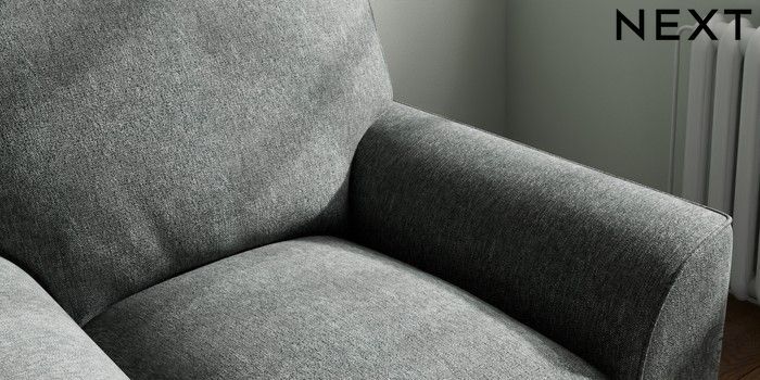 7.3.1 Buy Stamford Grand Relaxed Sit Armchair Cotswold Chenille Dark Grey Square Angle - Chrome Metal from the Next UK online shop Click here to use our accessible website