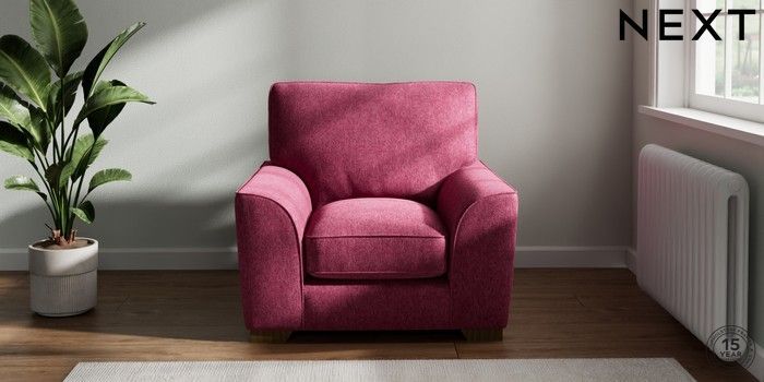 7.2.10 Buy Stamford Grand Relaxed Sit Armchair Cotswold Chenille Dark Raspberry Pink Square Angle - Mid from the Next UK online shop Click here to use our accessible website