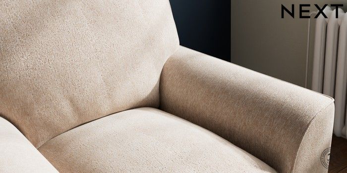 7.3.1 Buy Stamford Grand Relaxed Sit Armchair Cotswold Chenille Light Natural Square Angle - Gunmetal from the Next UK online shop Click here to use our accessible website
