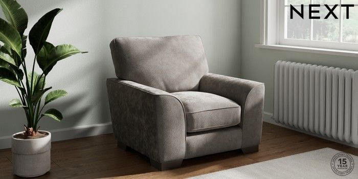 7.3.1 Buy Stamford Grand Relaxed Sit Armchair Distressed Velour French Grey Square Angle - Gunmetal from the Next UK online shop Click here to use our accessible website