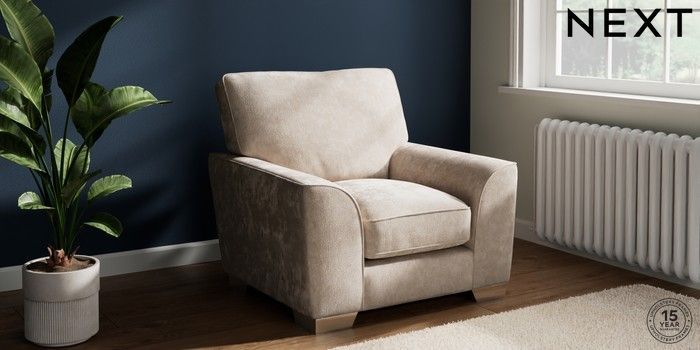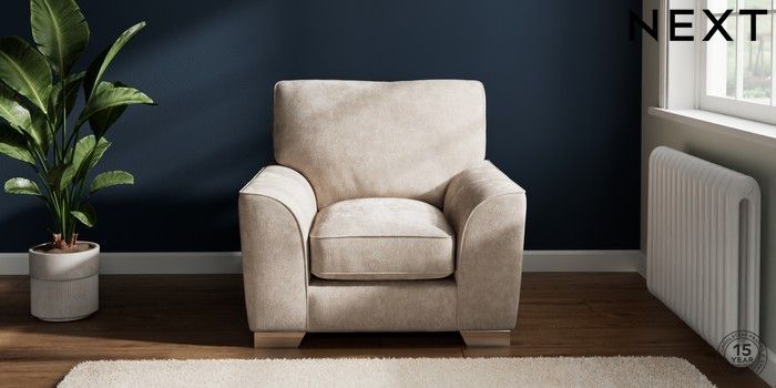 7.3.1 Buy Stamford Grand Relaxed Sit Armchair Distressed Velour Mid Natural Square Angle - Chrome Metal from the Next UK online shop Click here to use our accessible website