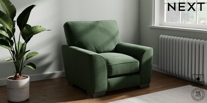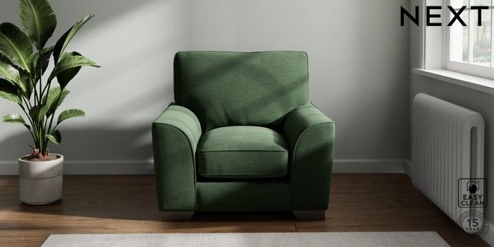 7.3.1 Buy Stamford Grand Relaxed Sit Armchair Fine Chenille Easy Clean Mid Khaki Green Square Angle - Gunmetal from the Next UK online shop Click here to use our accessible website