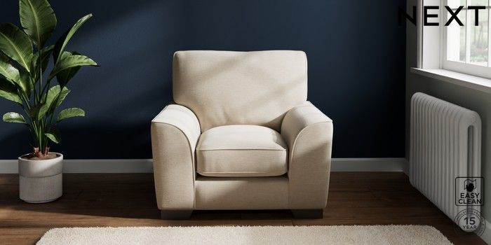7.3.1 Buy Stamford Grand Relaxed Sit Armchair Fine Chenille Easy Clean Oyster Square Angle - Gunmetal from the Next UK online shop Click here to use our accessible website
