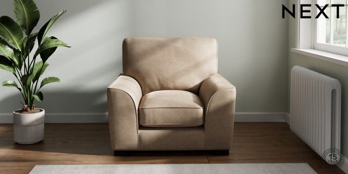 7.2.10 Buy Stamford Grand Relaxed Sit Armchair Luxe Chenille Mid Camel Beige Square Angle - Dark from the Next UK online shop Click here to use our accessible website