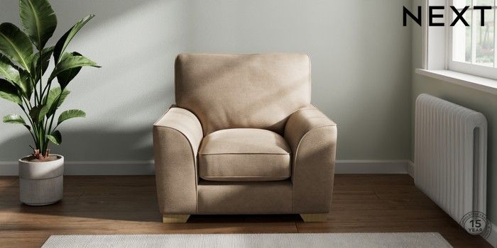 7.3.1 Buy Stamford Grand Relaxed Sit Armchair Luxe Chenille Mid Camel Beige Square Angle - Light from the Next UK online shop Click here to use our accessible website