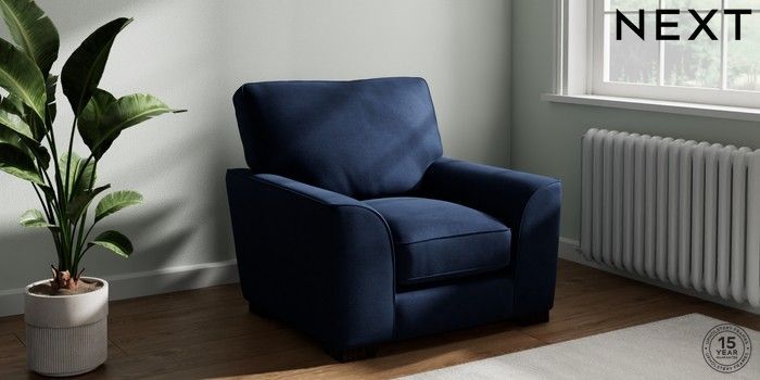 7.3.1 Buy Stamford Grand Relaxed Sit Armchair Luxe Chenille Navy Blue Square Angle - Dark from the Next UK online shop Click here to use our accessible website