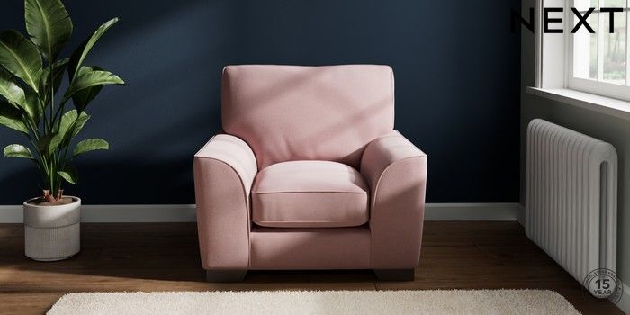 7.3.1 Buy Stamford Grand Relaxed Sit Armchair Natural Mix Light Rose Pink Square Angle - Gunmetal from the Next UK online shop Click here to use our accessible website