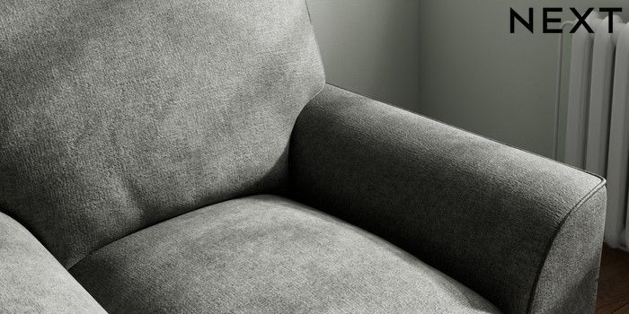 7.3.1 Buy Stamford Grand Relaxed Sit Armchair Plush Chenille Dark Grey Square Angle - Brushed Brass from the Next UK online shop Click here to use our accessible website