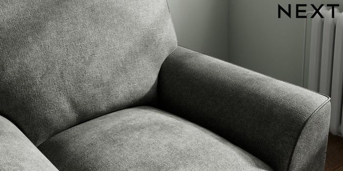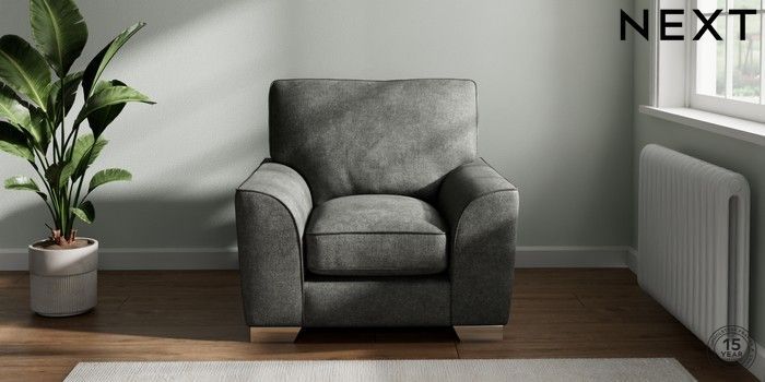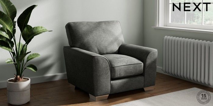 7.3.1 Buy Stamford Grand Relaxed Sit Armchair Plush Chenille Dark Grey Square Angle - Chrome Metal from the Next UK online shop Click here to use our accessible website