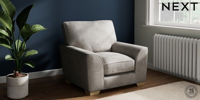 7.3.1 Buy Stamford Grand Relaxed Sit Armchair Plush Chenille Light Grey Square Angle - Light from the Next UK online shop