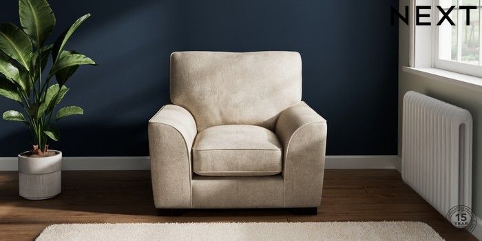 7.2.10 Buy Stamford Grand Relaxed Sit Armchair Plush Chenille Light Natural Square Angle - Dark from the Next UK online shop Click here to use our accessible website