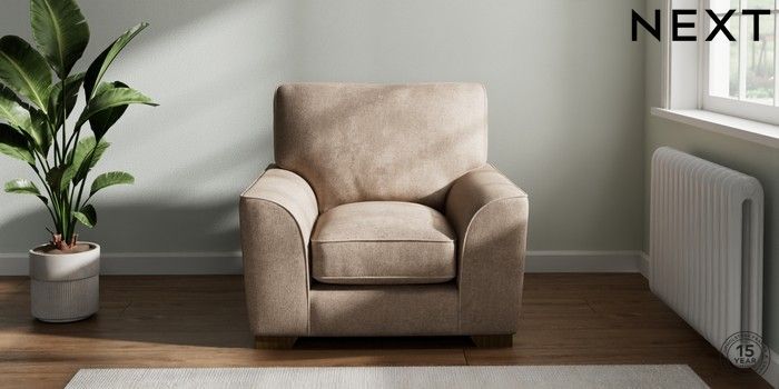7.2.10 Buy Stamford Grand Relaxed Sit Armchair Plush Chenille Mid Natural Square Angle - Mid from the Next UK online shop Click here to use our accessible website