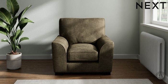 7.2.10 Buy Stamford Grand Relaxed Sit Armchair Plush Chenille Moss Green Square Angle - Dark from the Next UK online shop Click here to use our accessible website