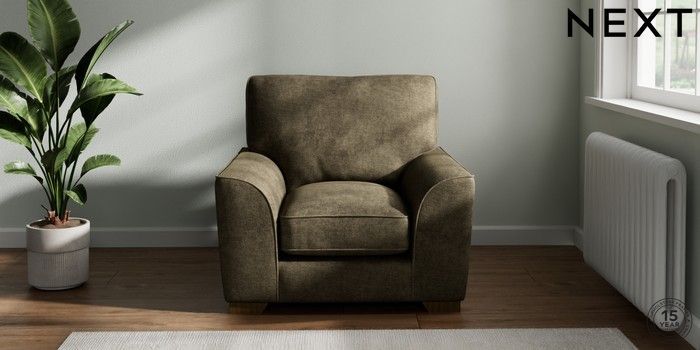 7.2.10 Buy Stamford Grand Relaxed Sit Armchair Plush Chenille Moss Green Square Angle - Mid from the Next UK online shop Click here to use our accessible website