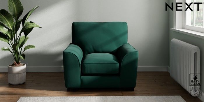 7.3.1 Buy Stamford Grand Relaxed Sit Armchair Plush Velvet Easy Clean Bottle Green Square Angle - Dark from the Next UK online shop Click here to use our accessible website