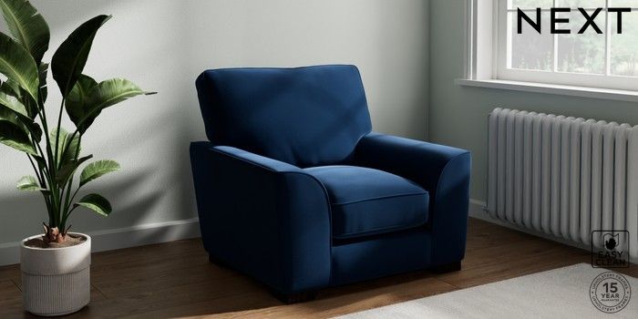 7.3.1 Buy Stamford Grand Relaxed Sit Armchair Plush Velvet Easy Clean Navy Blue Square Angle - Dark from the Next UK online shop Click here to use our accessible website