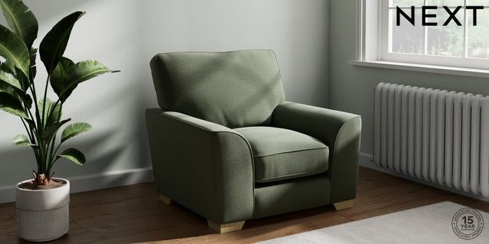 7.3.1 Buy Stamford Grand Relaxed Sit Armchair Relaxed Linen Look Dark Green Square Angle - Light from the Next UK online shop Click here to use our accessible website