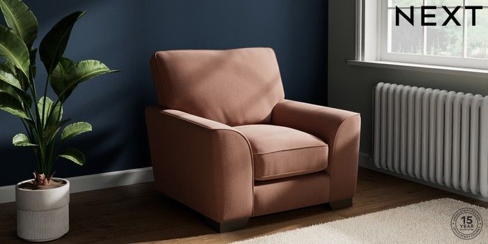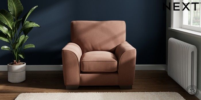 7.3.1 Buy Stamford Grand Relaxed Sit Armchair Relaxed Linen Look Light Rust Brown Square Angle - Gunmetal from the Next UK online shop Click here to use our accessible website