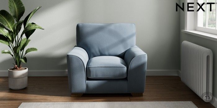 7.3.1 Buy Stamford Grand Relaxed Sit Armchair Relaxed Linen Look Mid Blue Square Angle - Mid from the Next UK online shop Click here to use our accessible website