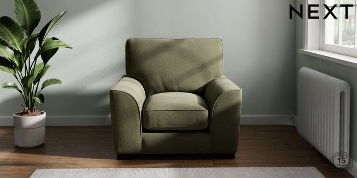 7.3.1 Buy Stamford Grand Relaxed Sit Armchair Ripple Chenille Mid Moss Green Square Angle - Dark from the Next UK online shop Click here to use our accessible website